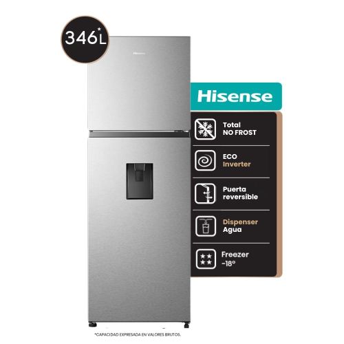 Descubrí el equilibrio perfecto entre diseño y funcionalidad con la Heladera No Frost Hisense 346L Inverter Dispenser Inox.